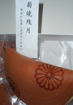 たかがドラ焼だが、「菊焼残月」と大層な名前がつけられて、菊の御紋章が焼印されていれば、何となく風格がある。だが、箱の中には5ケしか入っていないので、16人に分けるのは難しい。結局1つを3分割して大使夫妻は
