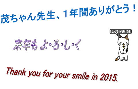 私はカードに「茂ちゃん先生、1年間ありがとう。Thank you for your smile.」と書いて渡した。熟女たちも私も長く続いているのは彼女の底抜けに明るいキャラクターのお陰だということをよく知っている。特に彼女のスマイルは我々に和みを与えてくれる。