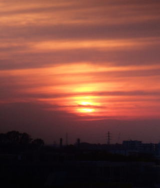 今日の夕焼けは太陽の周りの雲だけが赤く染まって、全体としてはパッとしなかった。が、太陽周辺だけを切り取ってみると夕焼けに染まった雲のグラデュエーションに一見の価値があるかなということで、昨日の失敗作のお口直しに掲載させていただく。