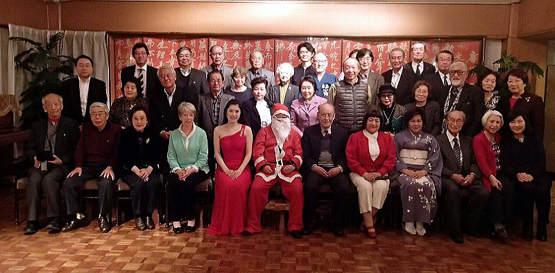 他にも、迫力満点の小池さんによる「居合抜き演武」、田村さんの「フラダンス」、プロの登場では岩橋庸一さんと須田俊子さんの尺八と箏で「六段の調」、「春の海」など盛りだくさんな出し物があって、3時間半が瞬く間に過ぎた。「春の海」の箏と尺八を聴いていると、何となくお正月気分になった。料理も中華のコースで悪くなかったし、プログラムも充実していたので、皆さんに楽しんで貰えたと思うが、会費の9,000円は少し高かったかもしれない。幹事としては反省点でもある。