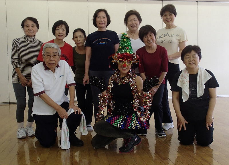 昨日のイブだが、先ず体操教室でインストラクターの杉田嬢がサンタ姿で張り切って登場。例によって3度のお色直しで、新しい4人のメンバーを驚かせた。その後は全員で記念写真。この体操教室は来年1月と2月はお休みになる。東急/池上線の「雪谷大塚」駅の上にある会場が改装工事で使えなくなるためで、折角お正月バージョンの衣装をそろえた杉田嬢はチョット残念そうだ。
