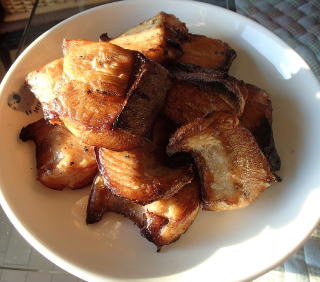 午前中、お屠蘇のセットやお雑煮用のお椀を出してきて、お鏡の飾りもつけた。早めに風呂にも入って、昼からブリを焼いた。我が家のブリの照り焼きは娘たちや客人から好評をいただいている。特にレシピが変っているわけではない。スーパーでブリの切り身を買ってきて、それを食べやすいように半分に切り、酒と醤油で下味をつける。焼くのはガスレンジのお魚グリルだが、受け皿には水ではなく、小さく砕いた備長炭を入れてある。現役時代、石炭事業部の子会社「やまよ商事」が販売している「お魚びんちょう」というのを試したところ、ふっくらと焼けることが分かった。それ以来、社内販売で調達した「お魚びんちょう」を使っている。