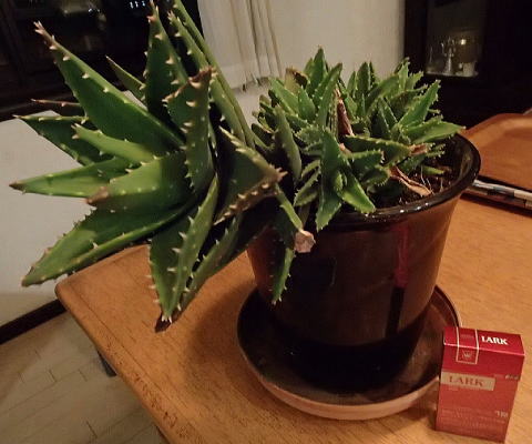 水できれいに砂埃を流し、ガラス面を雑巾で拭いていくとピカピカになった。どんどんきれいになっていくのは何となく楽しい。興に乗って8面全部をきれいにした。ついでに、ベランダの整理と植栽の手入れ。中でも、淳子が何処かで貰って来たアロエは驚くべき成長ぶりで植木鉢からはみ出していた。これを我が家で一番大きな植木鉢に植え替えた。元々、貰って来た時はペラペラのビニール製簡易包装の中で小さな1株が今にも枯れそうな姿で収まっていた。