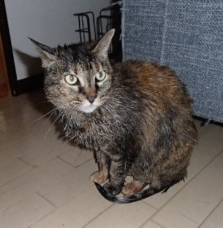 今日はもうひとつの懸案、ネコの入浴も終えた。とに角、水が大嫌いのネコどもは風呂場に入るだけでパニックになる。特にラーは臆病なので断末魔にも似た悲鳴をあげて狭い浴場を逃げ回るのだ。ネコのシャンプーは淳子にお願いするのだが、私は浴場のドアのところに待ち受けていて、ビショビショに濡れたネコを受け取る。まかり間違って逃げだせば家の中に水撒きしたようになるから慎重に受け止めなければならない。もし、タイガースの西岡が時にやるようなトンネルをすれば、事件になる。