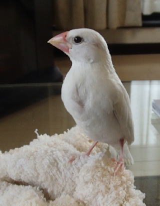 事前に、メールのやり取りでこちらの希望を伝えておいたので、とても丁寧に応対してくれた。最初に1ヶ月ほど前に入荷した文鳥(白)の雛を見せてくれた。手に乗せるとホントに小さくて、消しゴムの少し大きめの感じ。それが、口を開けて餌をねだる。スポイドのような給餌器を使って餌をやるトレーニングも受けた。