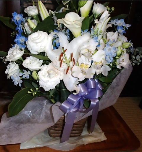 千草が持参してくれた法要の仏花がそろそろ枯れてきた。それでも、カサブランカがたくさん開花してとても豪華。最後の輝きを見せているので写真に撮った。8日に貰ったので、今日で丁度10日になる。貰ったときに注いだ延命剤入りの水が効き目を現したのだろうか。生花にしては長くもった。流行りの英語でいうと、Sustainable