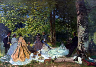展覧会も4月~7月とロングランで開会するためか、それほど混雑はなかった。「プーシキン美術館」から借りた65点のフランス風景画も1時間余りで観ることができた。18世紀のロシアのコレクションなので、モネ、セザンヌ、ルノアールなどの印象派の作品も初期のモノが多く、晩年の有名な作品とは異なり、何となく親しみやすい感じがした。この美術展の目玉作品は26歳のモネが描いた「草上の昼食」という作品だ(右)。「睡蓮」の画も展示されていたが、この「草上の昼食」は睡蓮などとはかなり感性の異なる表現のように思う。