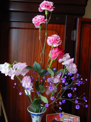 上左の写真は仏花(2021-w04)は、桜の好きだったスイートピーとバラにスプレーカーネーション。紫の小さな花はカスミ草に染色したものだ。こういうのはあまり好きではないが、珍しいので買ってみた。