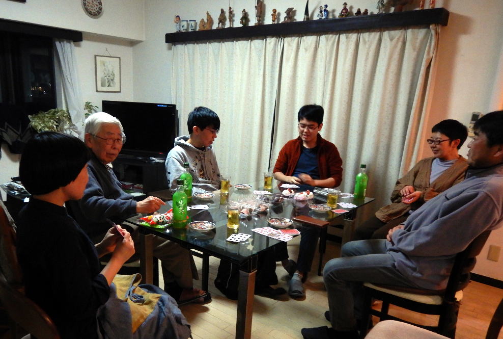 皆が集まると、例によってすき焼きパーティ。それが終わると皆でトランプ遊び。ババ抜きで順番を決めて、デザートの好きなものを取る。