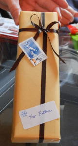 チョコレートの方は「DEMEL」。ベルギー製の高級品だ。樽酒の方は、300mlの瓶を内蔵したミニチュアのようなもの。お酒は飲まないが、可愛いので頂戴した。リビングのテーブルに置いておけば、ちょっと変わった飾り物になりそうだ。