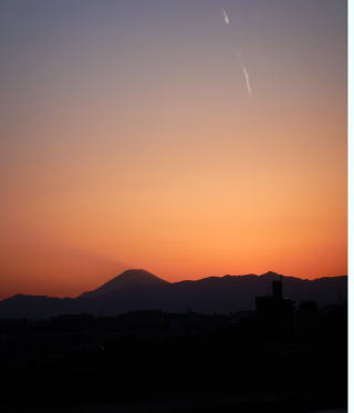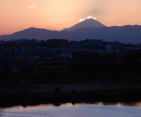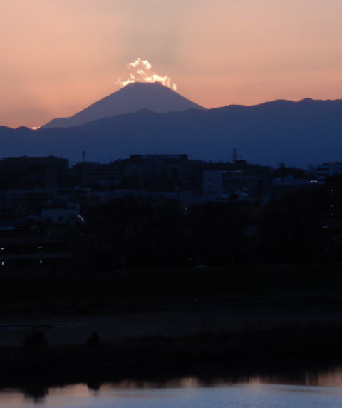 そして、ここ2~3日が「ダイヤモンド富士」のタイミング。日曜日には皆さんに観て貰おうと思ったが、生憎、厚い雲が出て何も見えなかった。今日は快晴なので、5時過ぎからカメラを持ってベランダに出た。